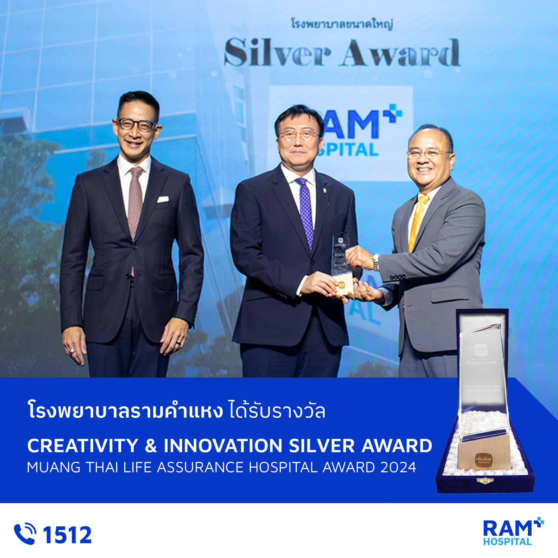 Ramkhamhaeng Hospital has been recognized for its outstanding initiative, openness, and commitment to embracing new innovations, receiving the “Creativity and Innovation Silver Award” at the “Muang Thai Life Assurance Hospital Awards 2024”. This prestigious accolade affirms the hospital’s continued leadership in developing innovative approaches to medical service delivery.