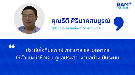 ขอบคุณคุณหมอทุกท่านนะครับ ที่ดูแลและให้คำแนะนำ ให้ทางเลือกในการรักษา แล้วก็ให้ข้อมูลรายละเอียดอย่างดี ได้มีโอกาสรับการดูแลจากทีมห้องฉุกเฉินนะครับ ทีม ICU CCU แล้วก็วอร์ดพยาบาล ก็ได้รับการดูแลอย่างดี แล้วก็ขอความช่วยเหลือ หรือว่าขอคำแนะนำต่างๆ ทุกคนก็ให้คำตอบให้การดูแล ให้รายละเอียดอย่างดีครับ