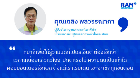 “ที่มาก็เพื่อให้รู้ว่ามันดีกี่เปอร์เซ็นต์ ต้องเช็คว่าเวลาเหนื่อยแล้วหัวใจจะปกติหรือไม่...ความดันเป็นเท่าใด คือมีมอนิเตอร์เช็คผลตั้งแต่เราเริ่มเดิน เขาจะเช็คทุกขั้นตอน”