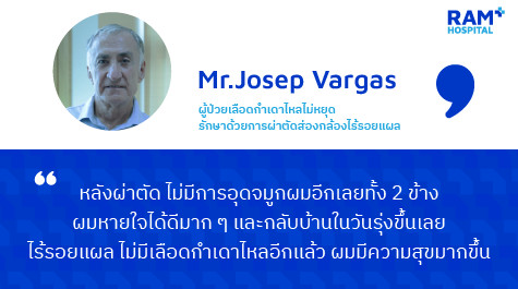พอดีภรรยาผมหาข้อมูลได้ว่ามีทีมแพทย์ผู้เชี่ยวชาญทาง หู คอ จมูก อยู่ที่ รพ.รามคำแหง จึงตัดสินใจพาผมมารับการรักษาโดยได้พบกับคุณหมอลลิลทิพย์ และคุณหมอภูริปัณย์ ซึ่งได้ช่วยกันทำการผ่าตัดให้ผมใหม่อีกครั้งและได้ประสบความสำเร็จอย่างมากเพราะหลังจากนั้นผมรู้สึกเหมือนได้กลับมามีชีวิตใหม่ไม่มีเลือดกำเดาไหลอีกแล้ว