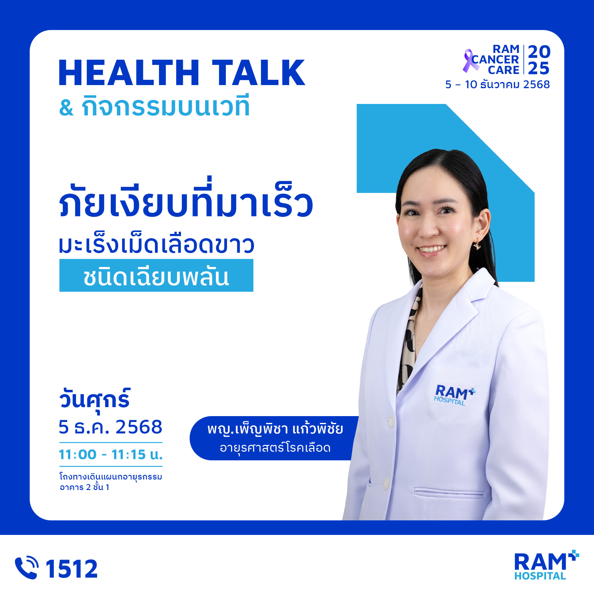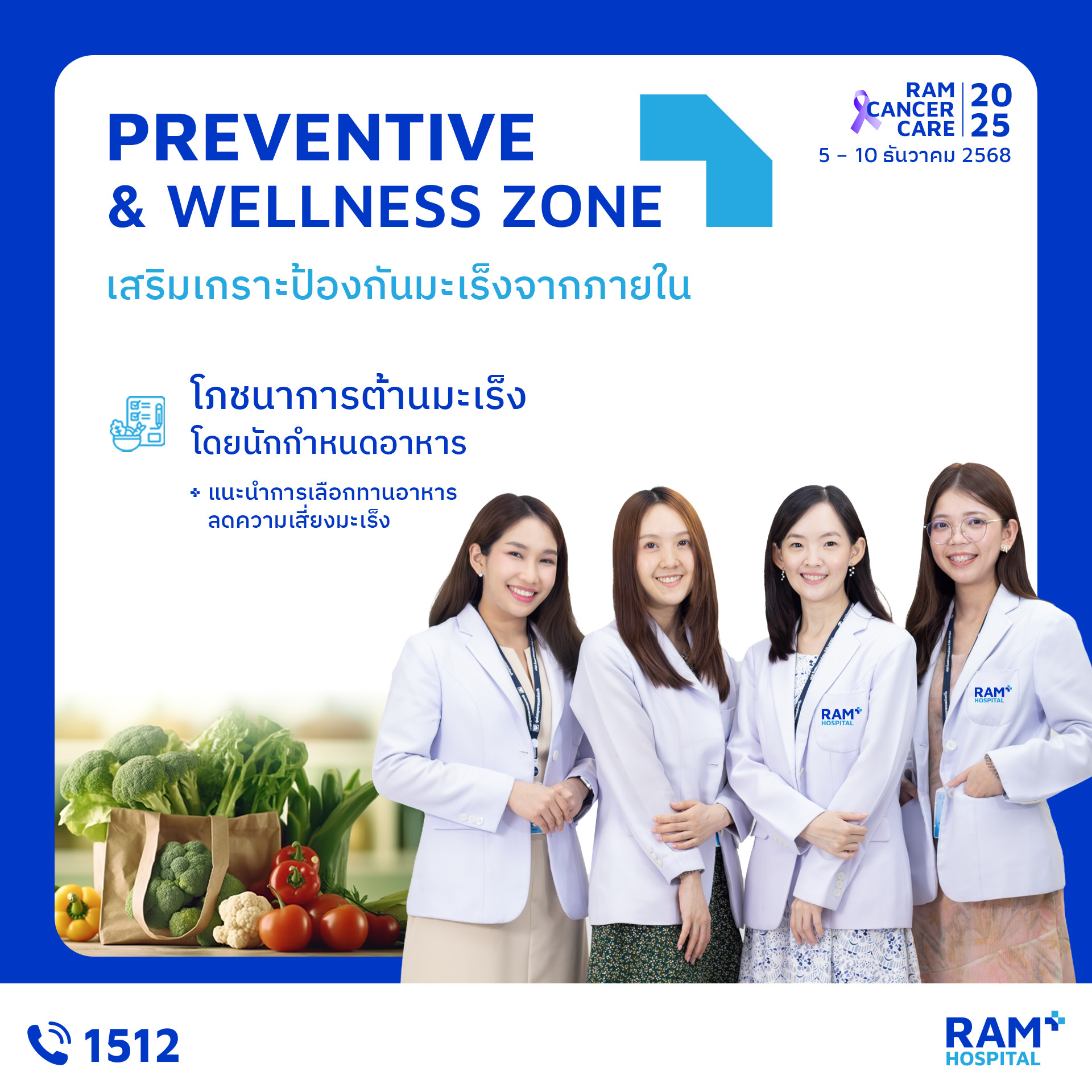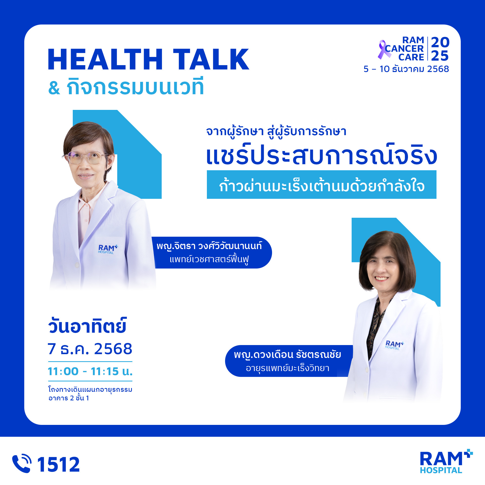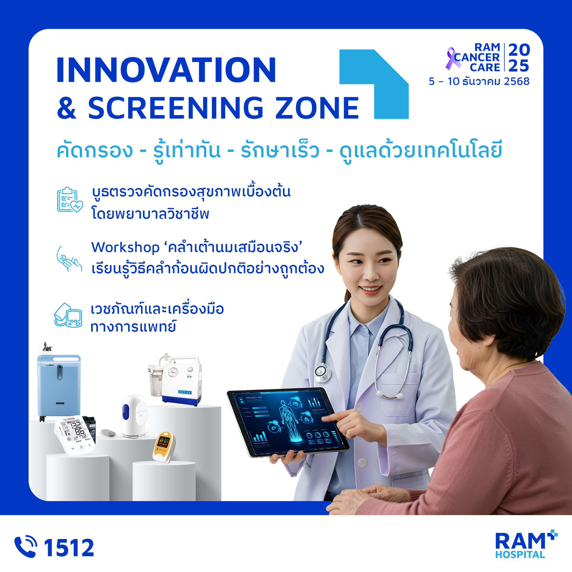 เพราะ “การรู้ก่อน” คือก้าวแรกของการป้องกันมะเร็ง งานนี้คืออีกหนึ่งกิจกรรมดี ๆ ที่โรงพยาบาลรามคำแหงตั้งใจจัดขึ้น เพื่อให้ประชาชนเข้าถึงความรู้ที่ถูกต้อง เข้าใจการป้องกัน และเห็นความสำคัญของการตรวจคัดกรองมะเร็ง มาร่วมเรียนรู้ ดูแลตัวเอง และส่งต่อกำลังใจไปพร้อมในงาน Ram Cancer Care 2025 แล้วพบกันในงานนะคะ